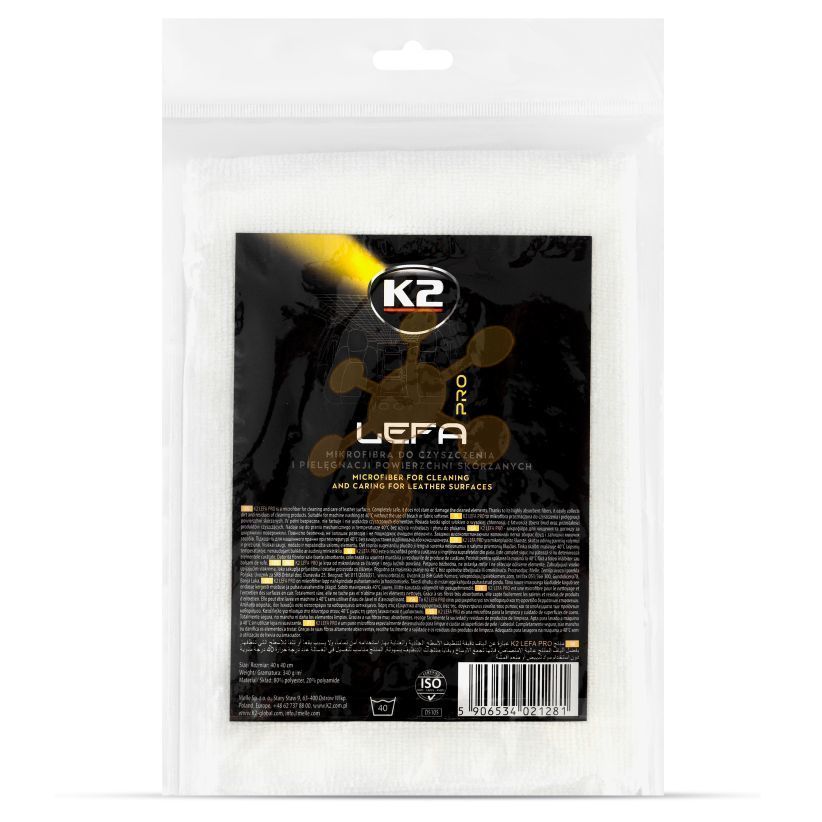 K2 LEFA PRO čistič kože z mikrovlákna – určený špeciálne na čistenie a starostlivosť o kožené povrchy.