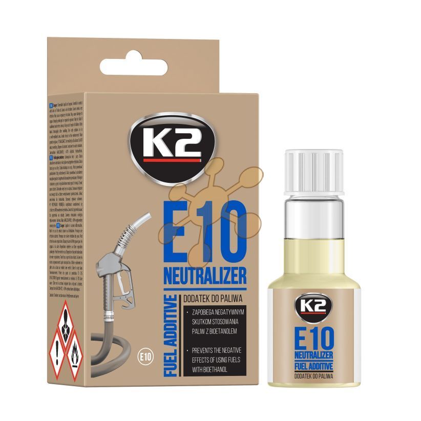 Prísada do paliva K2 E10 Neutralizer 50 ml zlepšuje kvalitu paliva a znižuje negatívne účinky používania palív obsahujúcich bioetanol (napr. E10).
